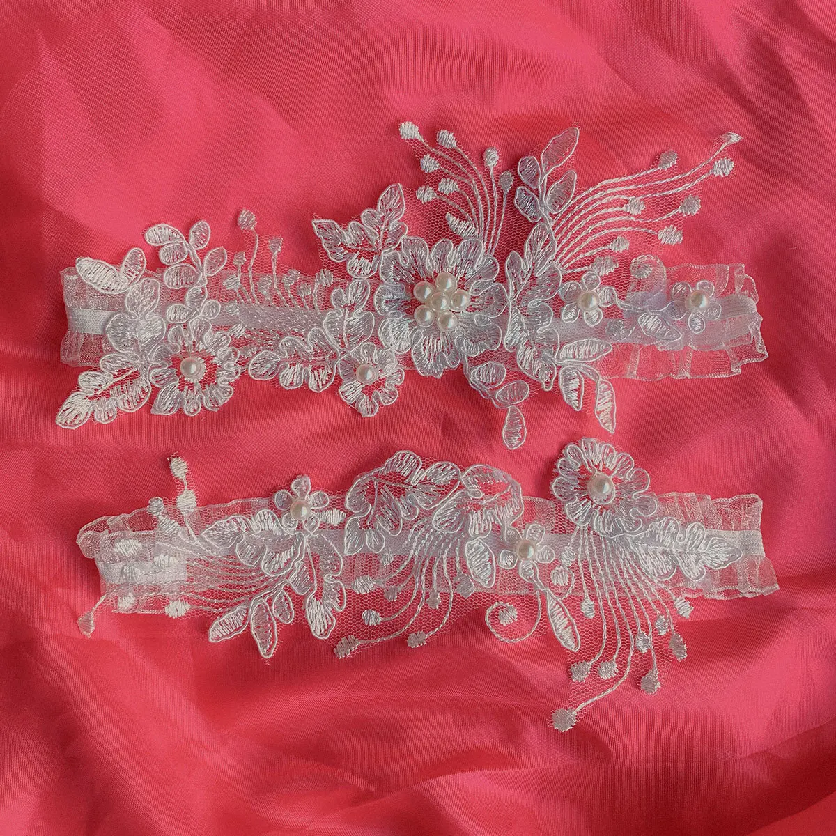 Wedding Garter Embroidery Flower PearlsWhite Sexy Garters for Women/Female/Bride Thigh Ring Bridal Leg Garter