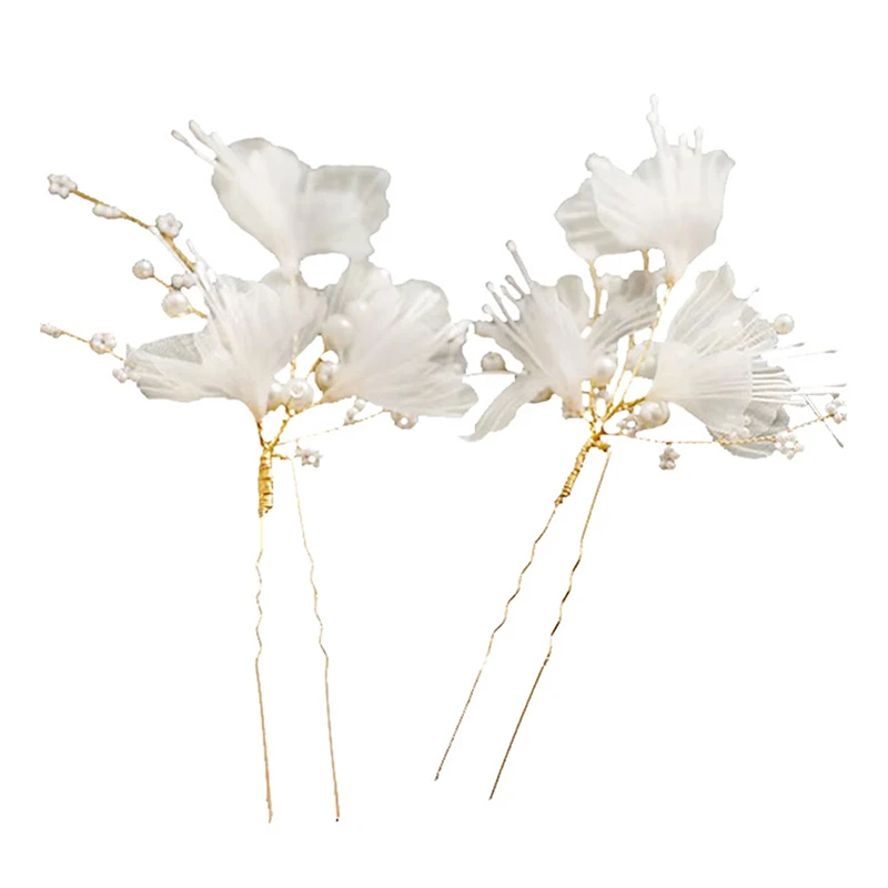 Wedding Shape Hair Clips Bridal Headpiece Mesh Flower Hairpins Pearl Women Wedding Hair Accessories Bridal Headdress Jewelry