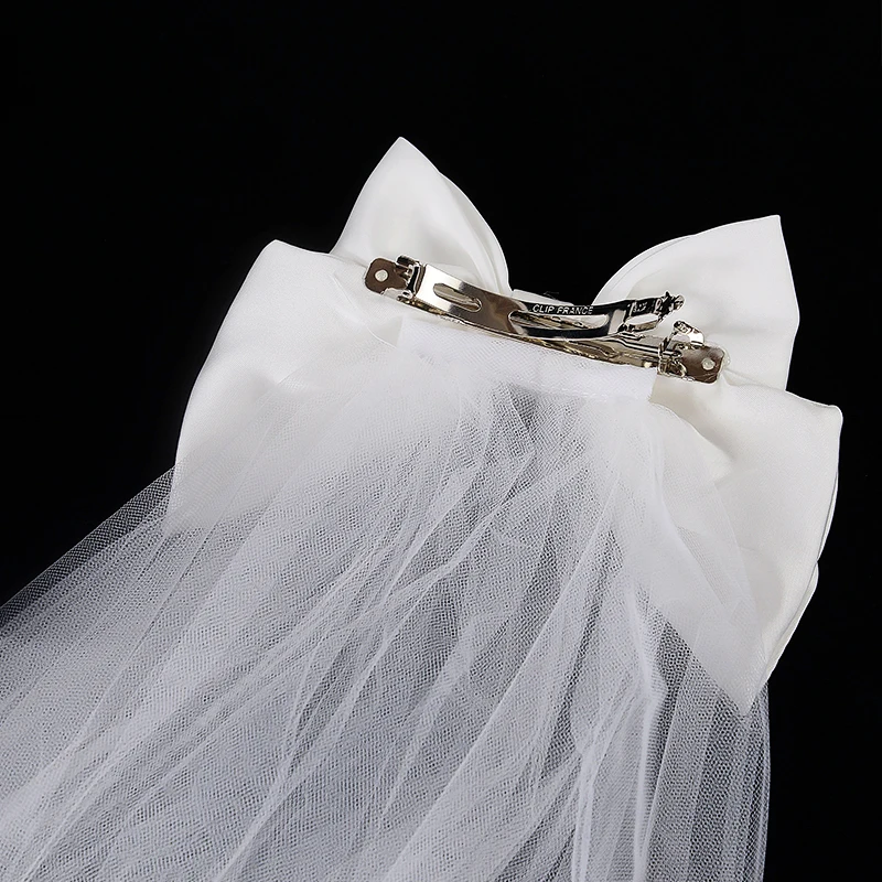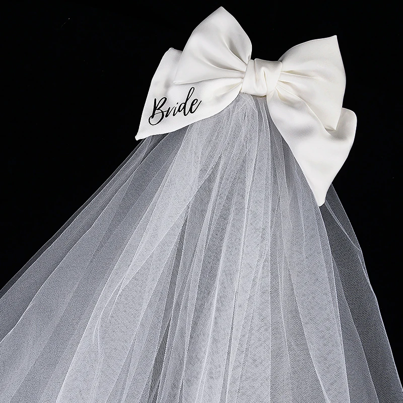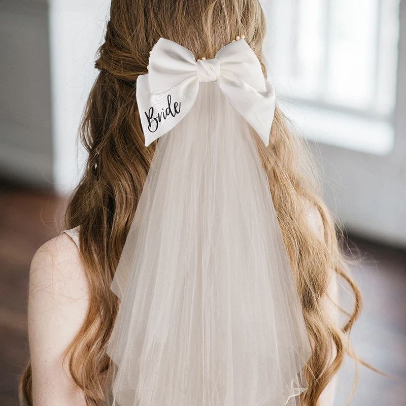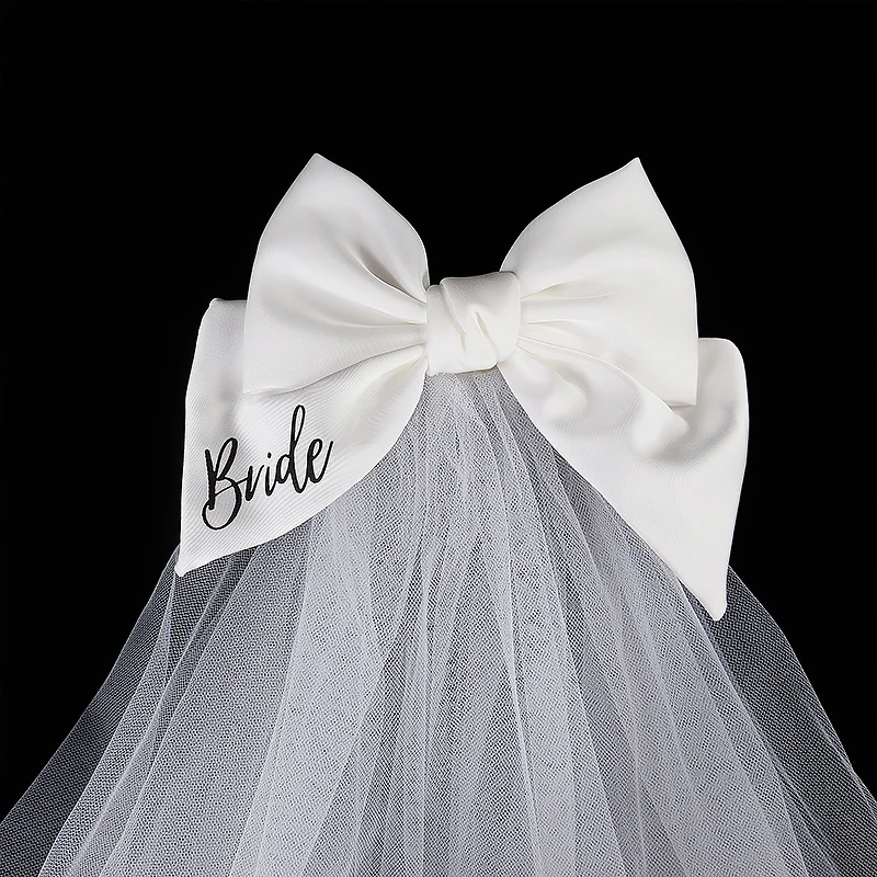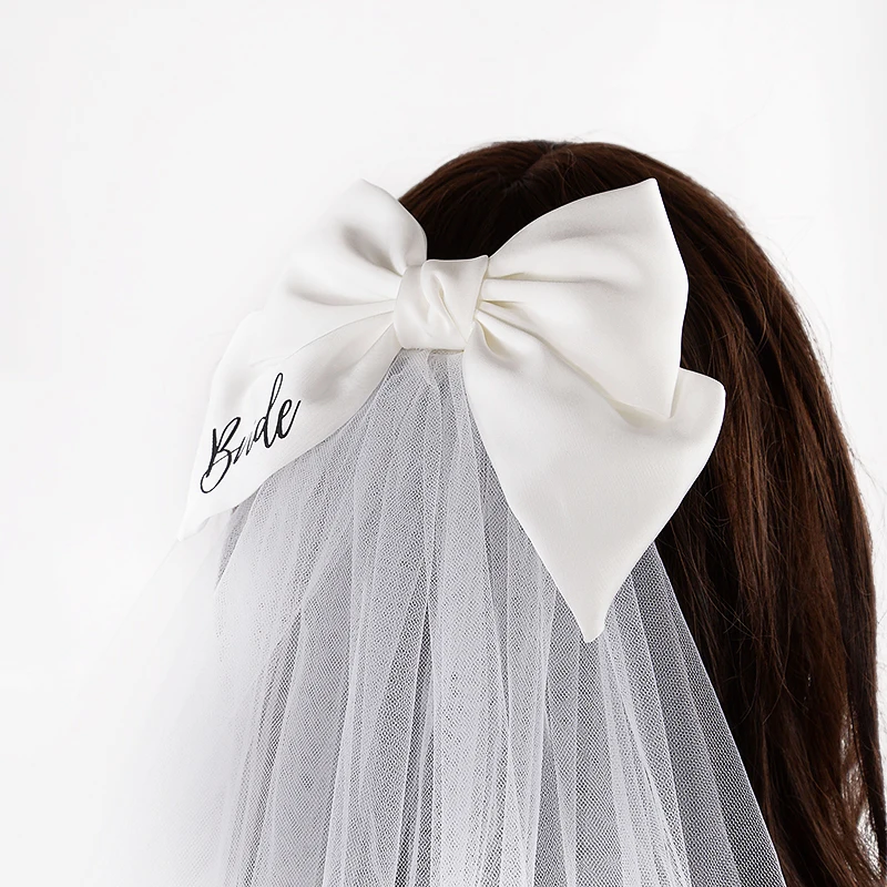 White Bride Bow Veil with Hair Clip Bridal Shower Party Decoration Wedding Photo Props Hen Bachelorette Party Supplies Gift