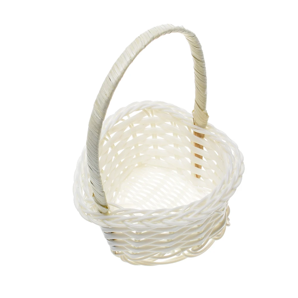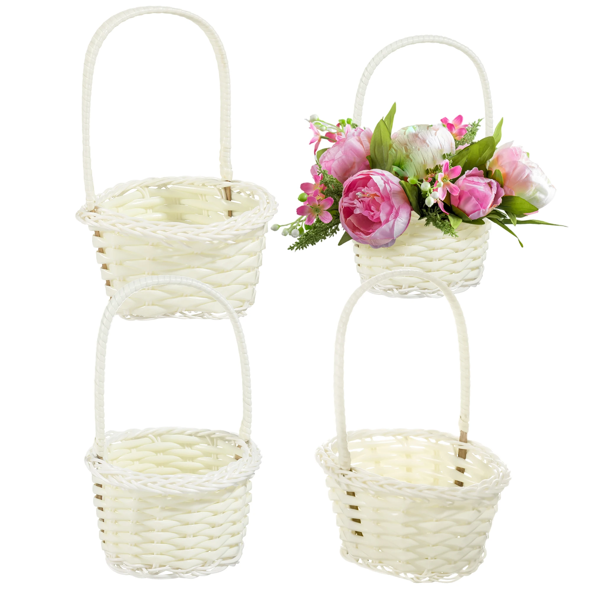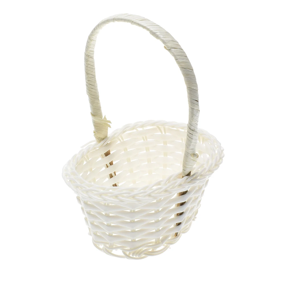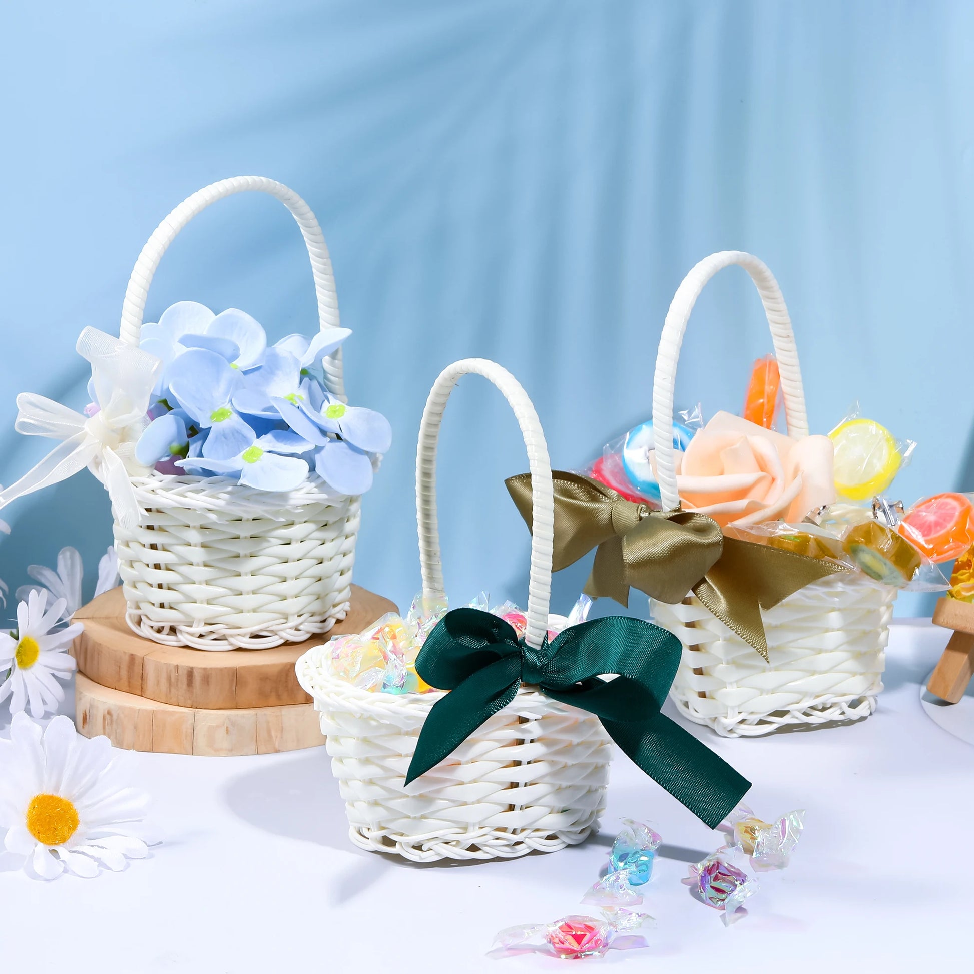 White Flower Basket Weaving Wedding Baskets For Flowers Bride/Kids Hand Held Wedding Basket Cosmetics Organizer Basket