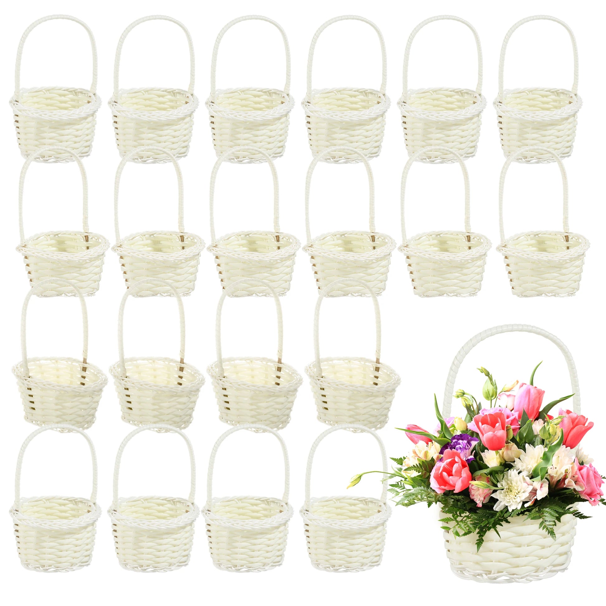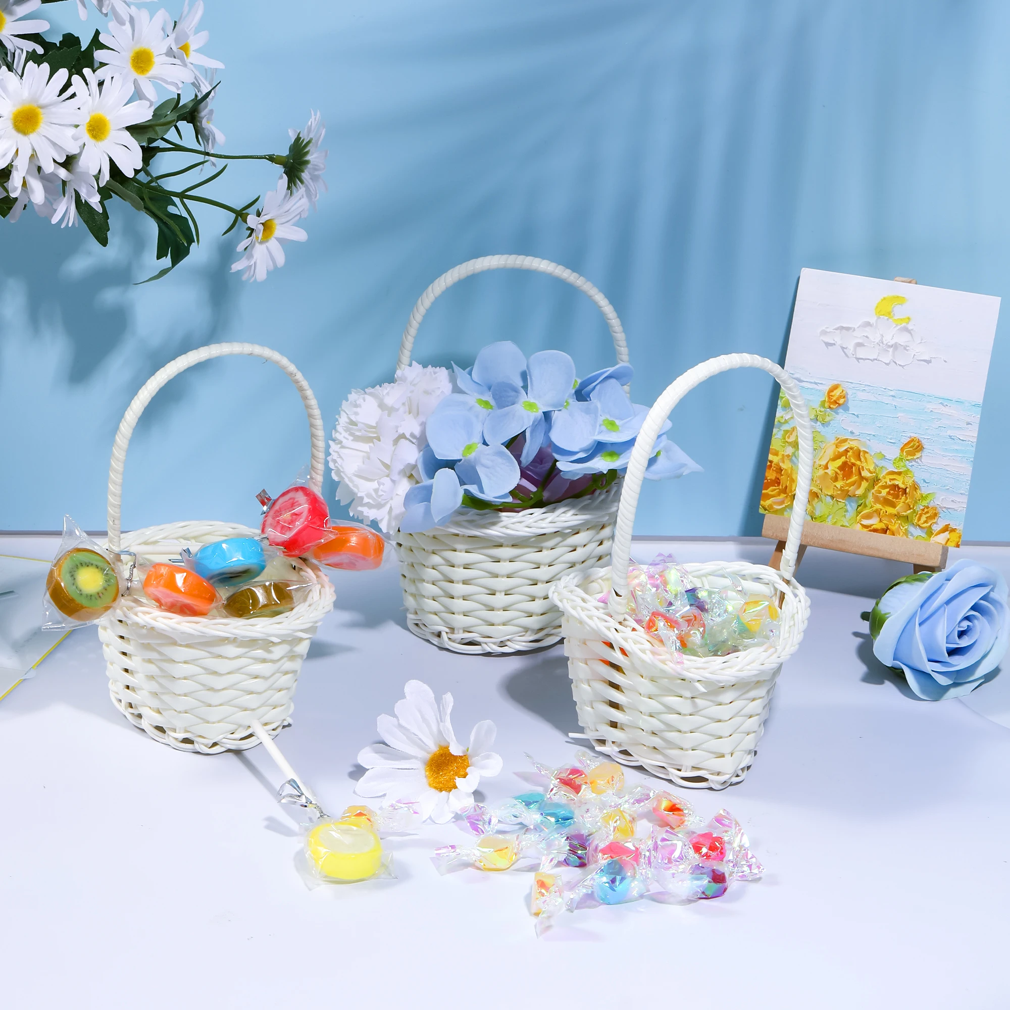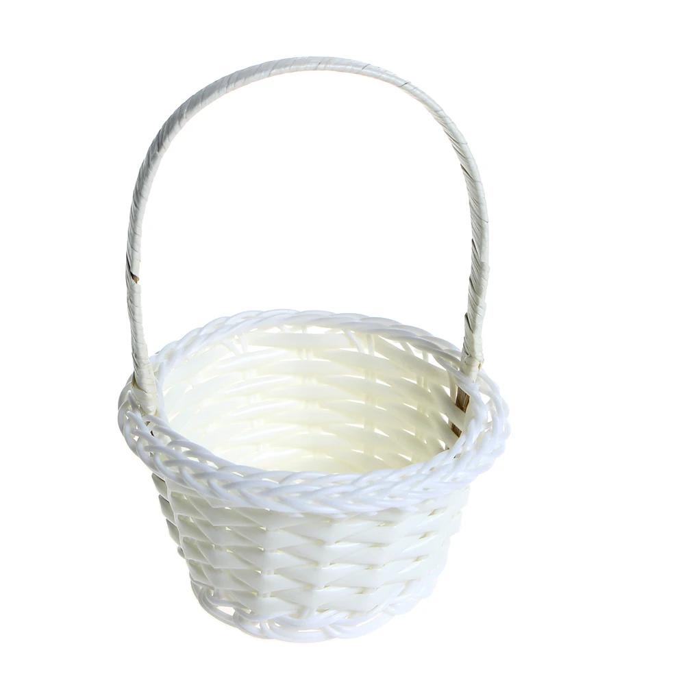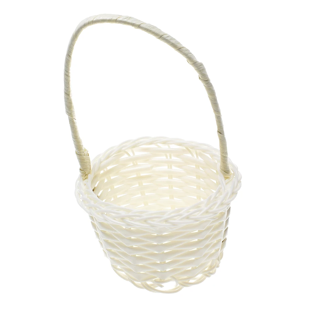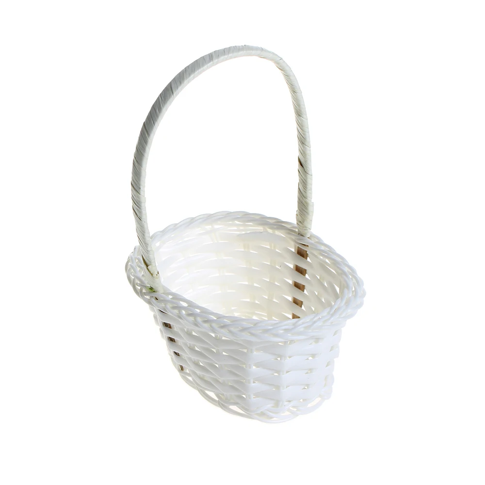 White Flower Basket Weaving Wedding Baskets For Flowers Bride/Kids Hand Held Wedding Basket Cosmetics Organizer Basket
