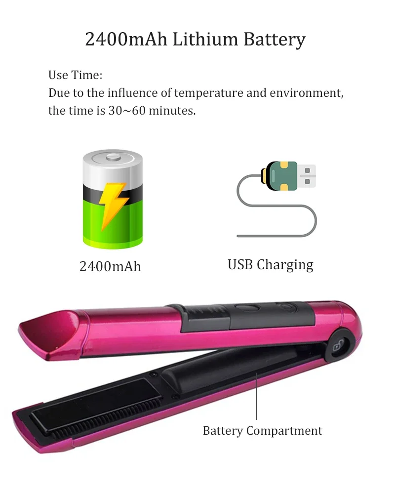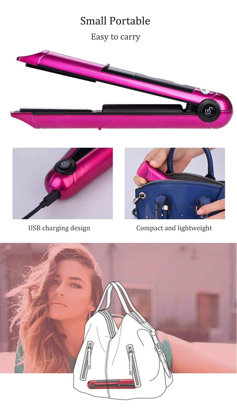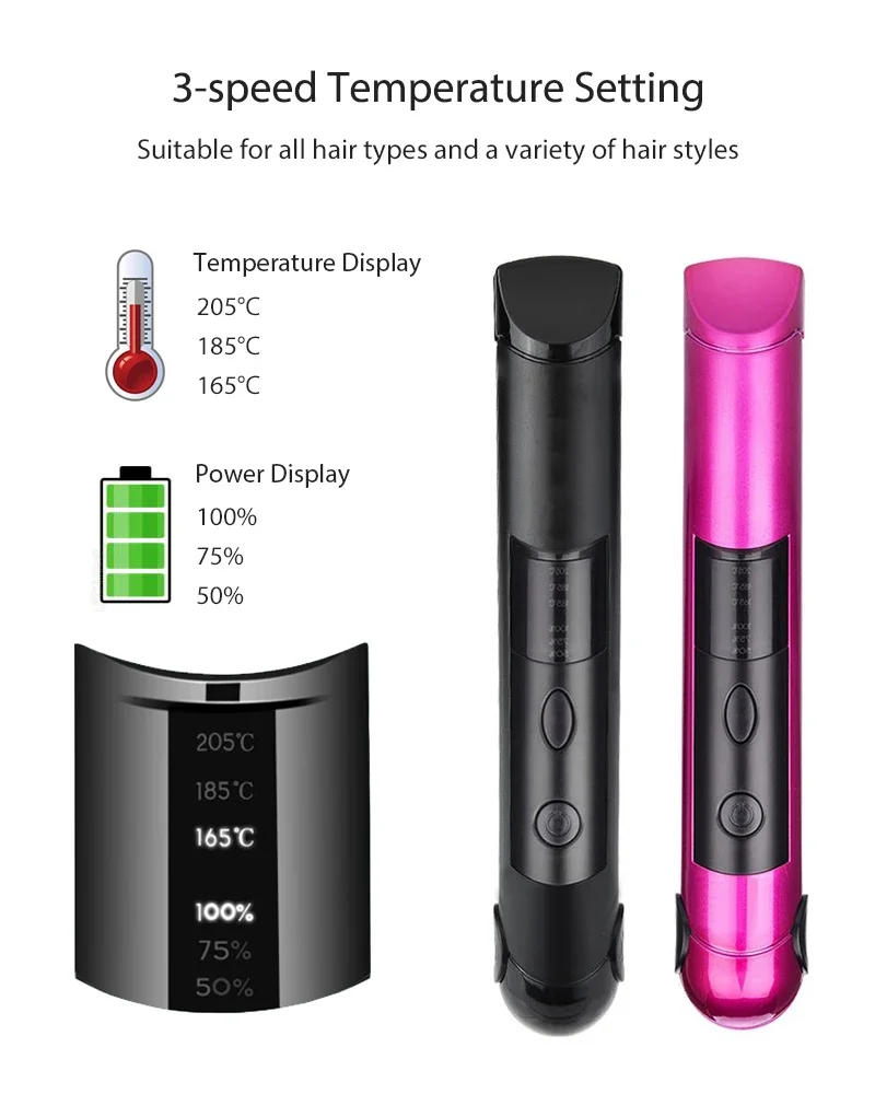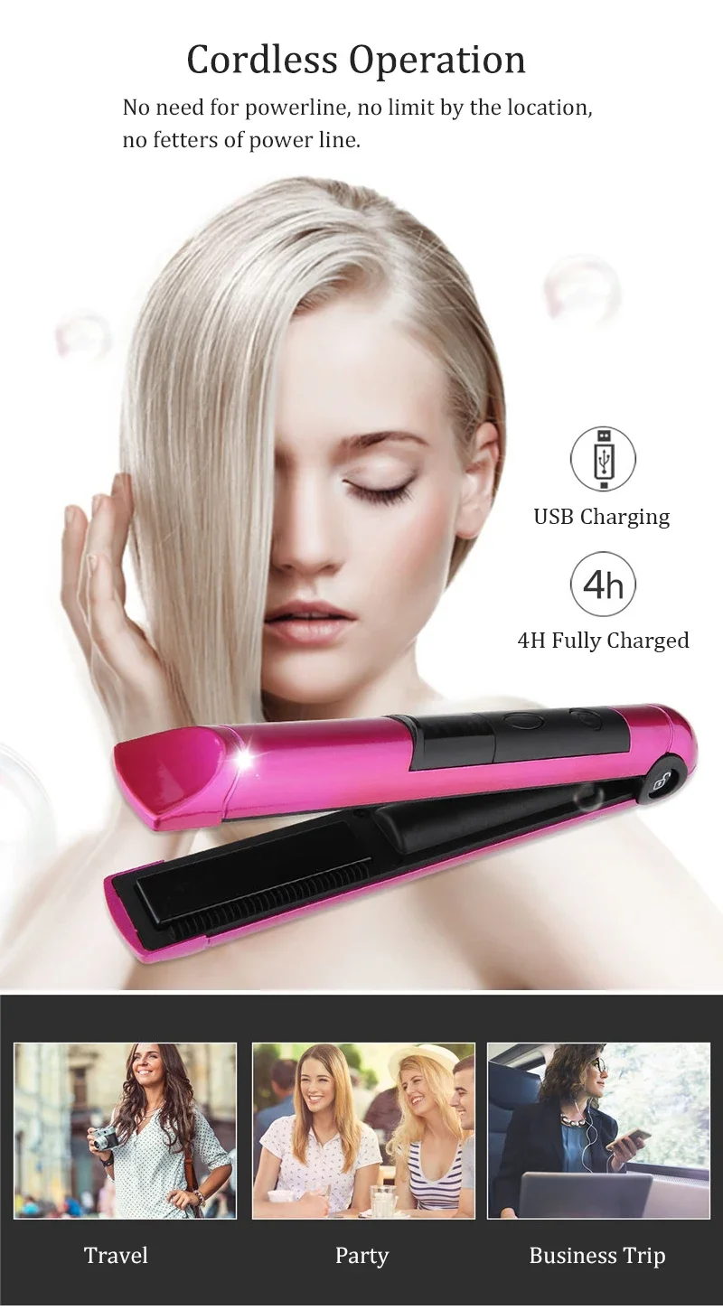 Wireless Electric Heating Hair Straightener Curler For Women Rechargeable Portable Home Travel Hair Straightening Curling Iron
