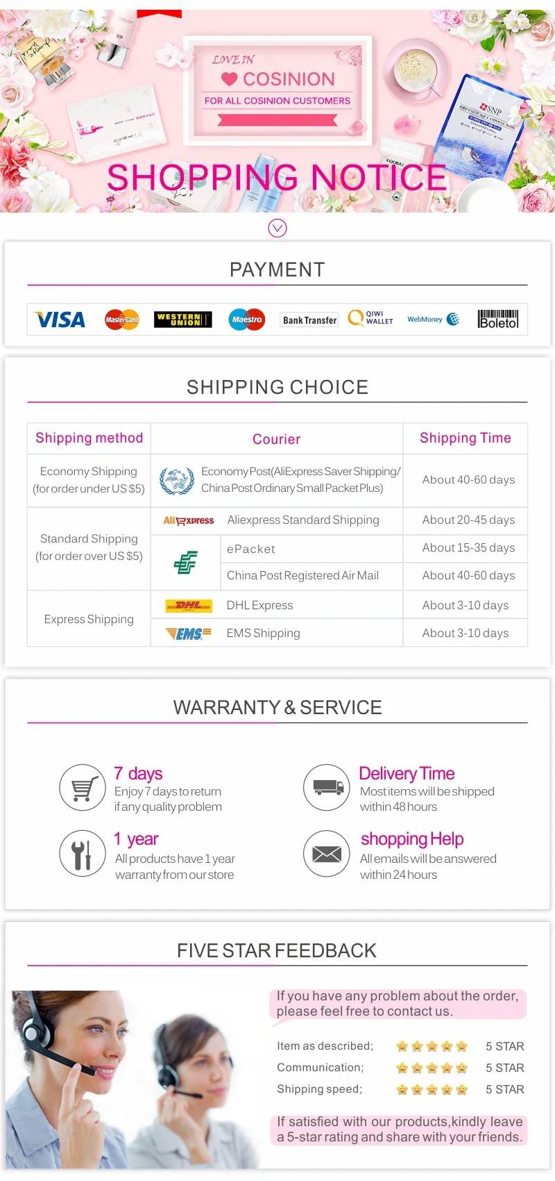 * Without any invoice, price, promotion and logo;