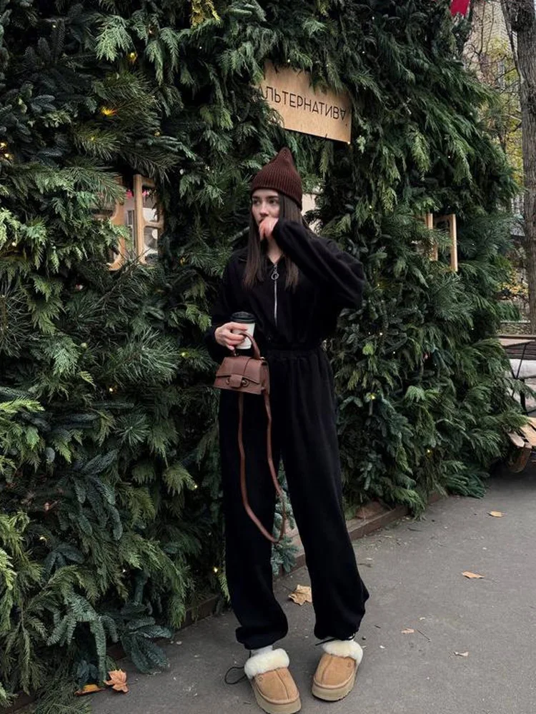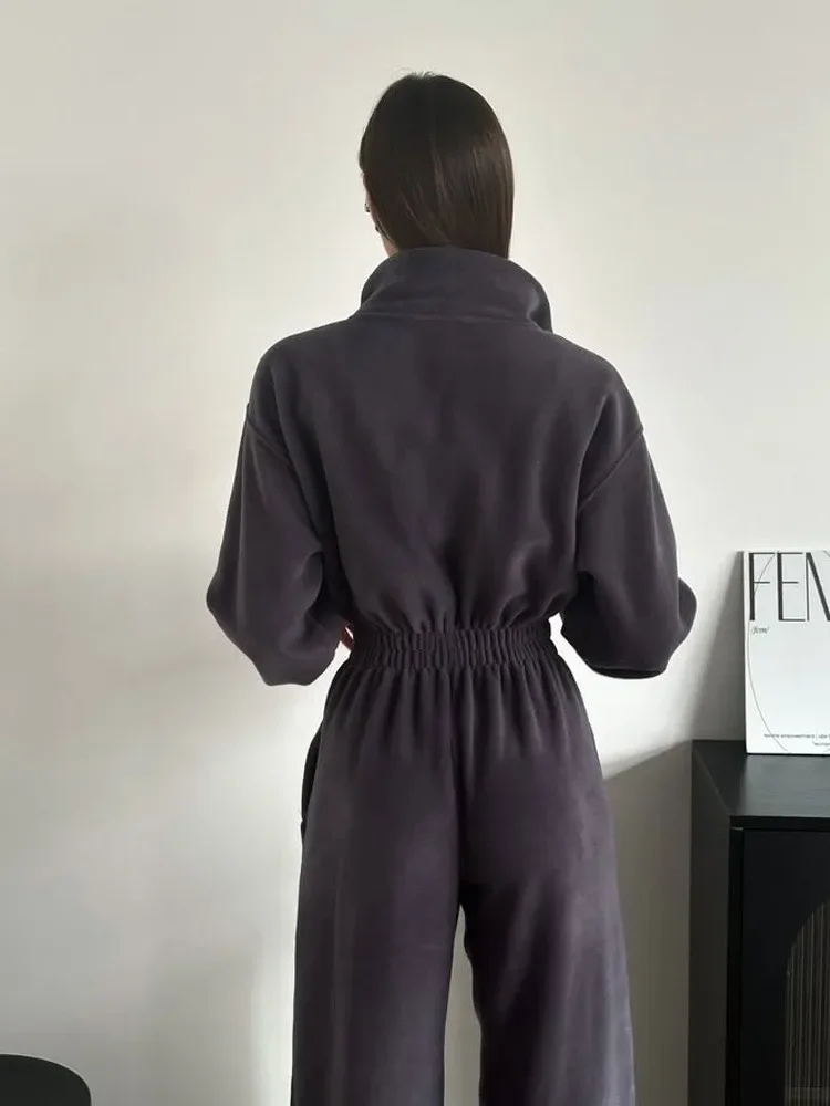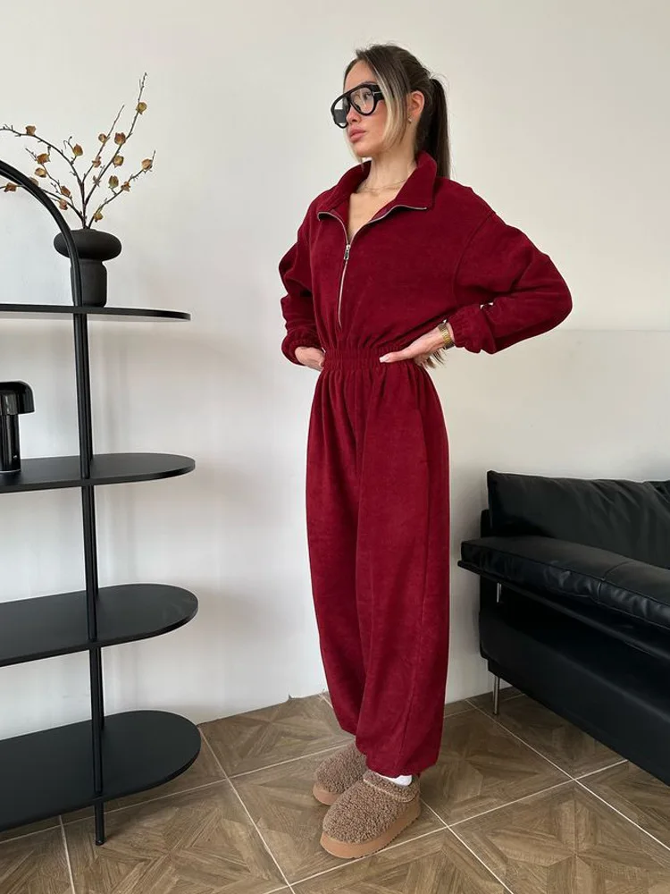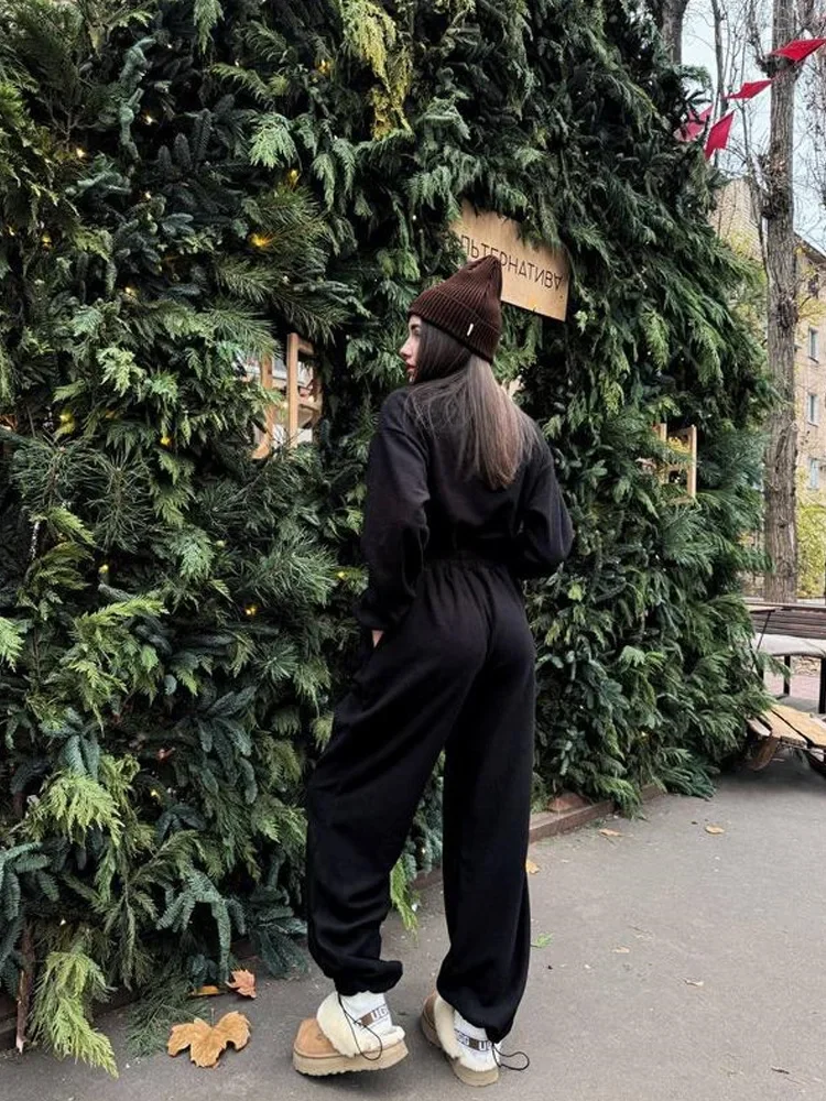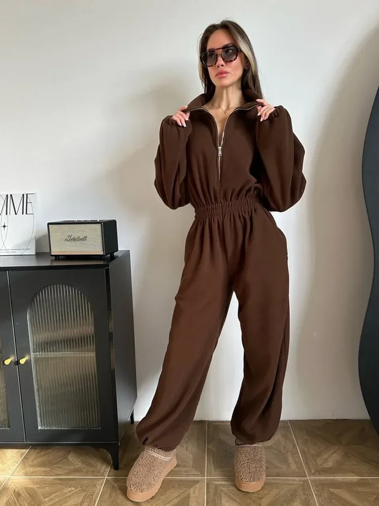 Woman Clothing Fashion Long-sleeved Jumpsuit Women's Set Zipper Casual Semi-open Elastic Waist Jumpsuit Elegant Sports Jumpsuit