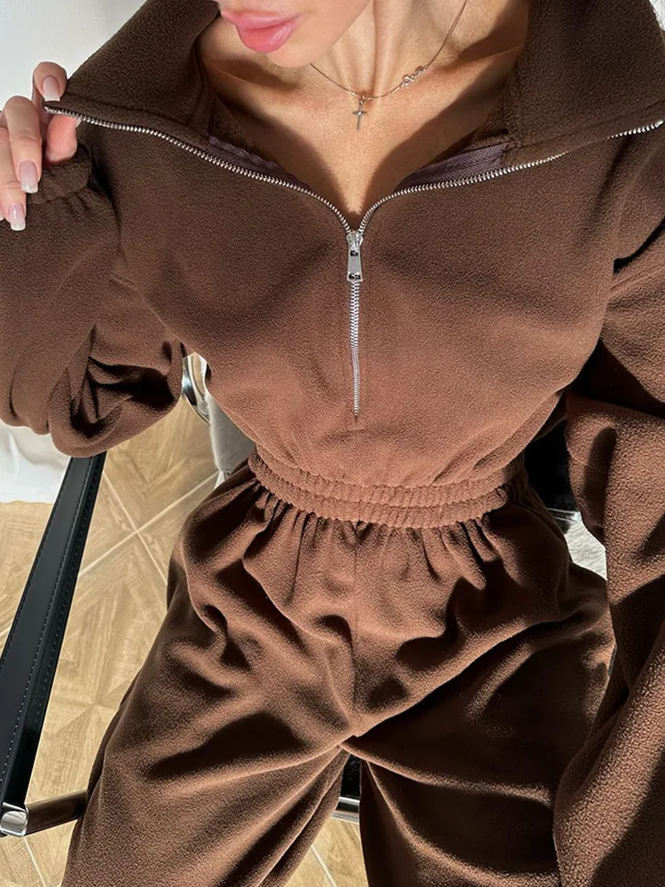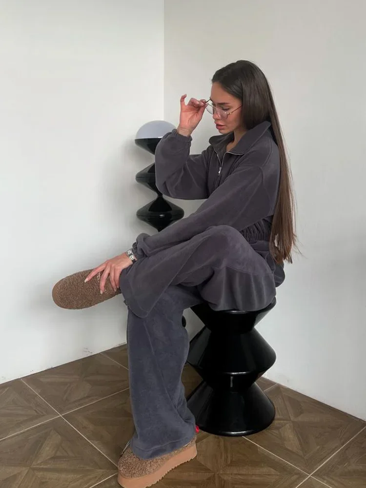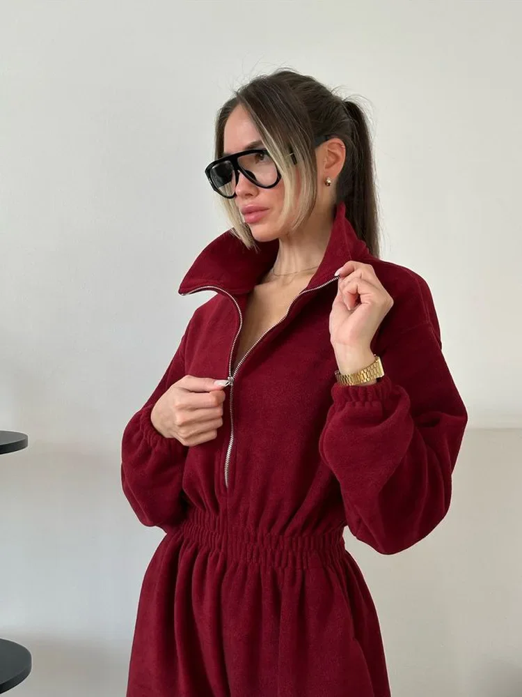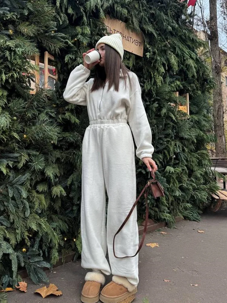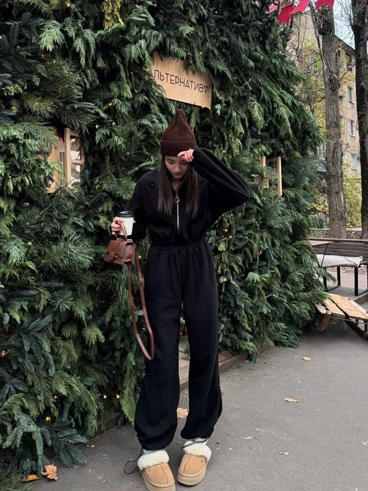 Woman Clothing Fashion Long-sleeved Jumpsuit Women's Set Zipper Casual Semi-open Elastic Waist Jumpsuit Elegant Sports Jumpsuit