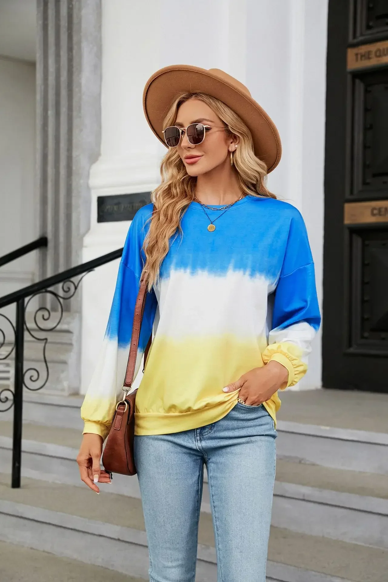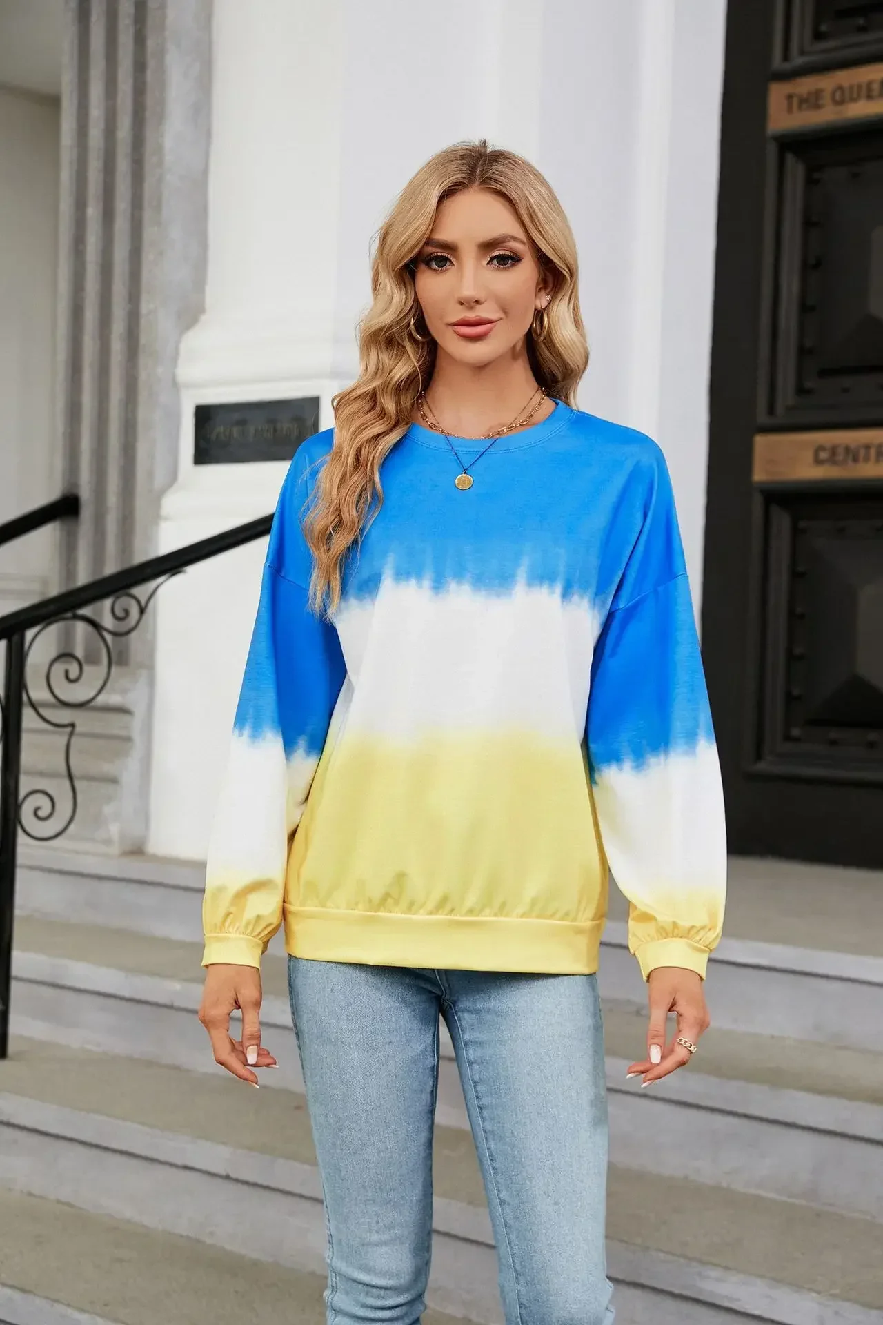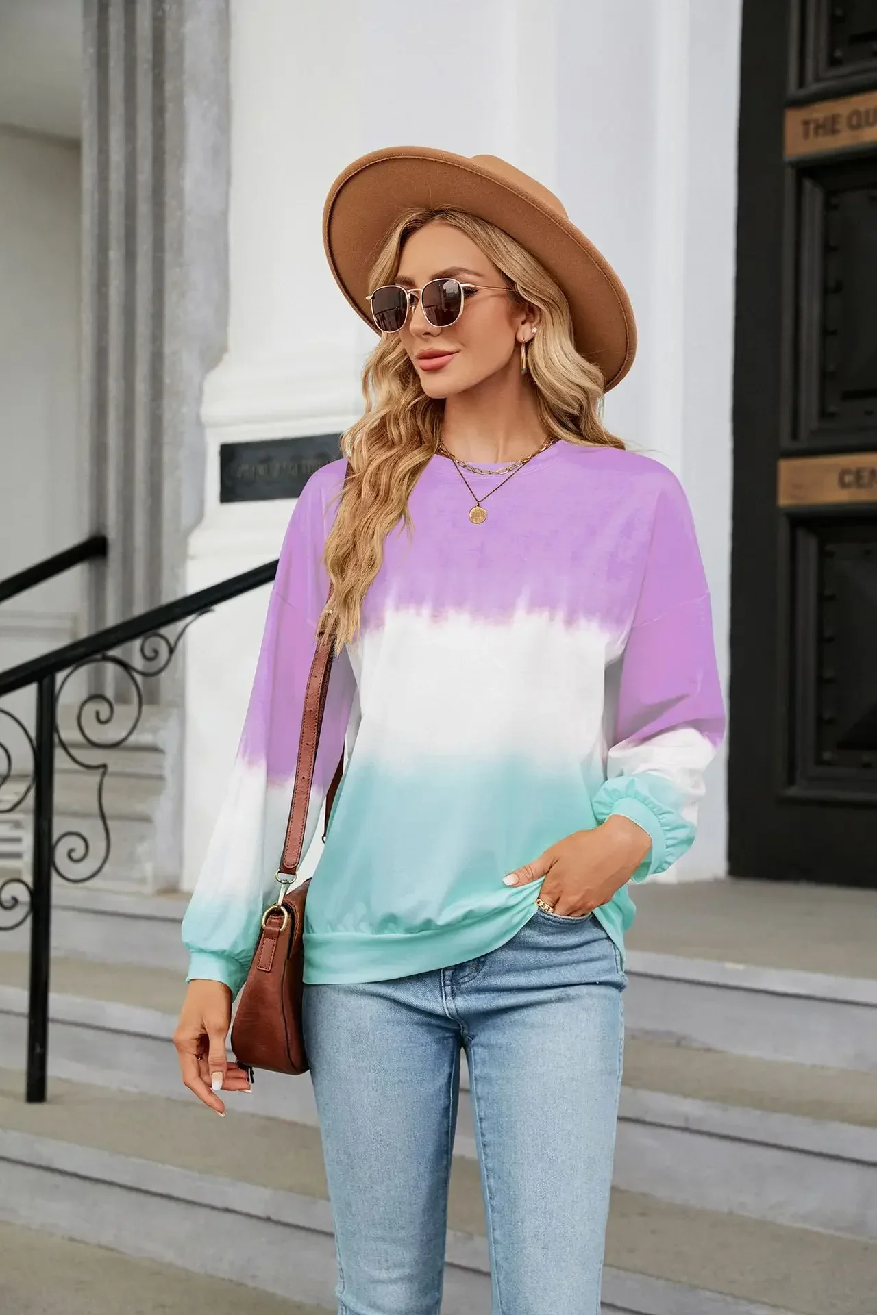 Women's Fashion Gradient Hoodies Sweatshirts Long Sleeve O-Neck Hoodies Print Oversized Pullovers Women Y2k Harajuku Streetwear