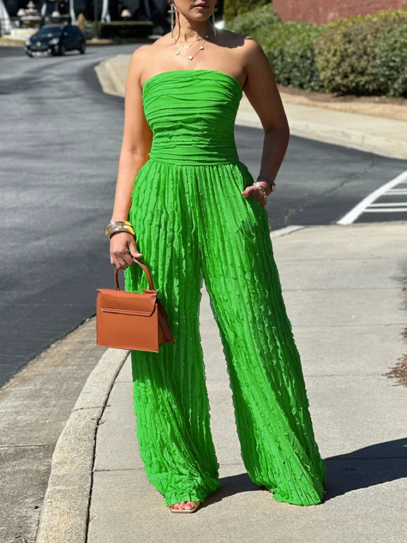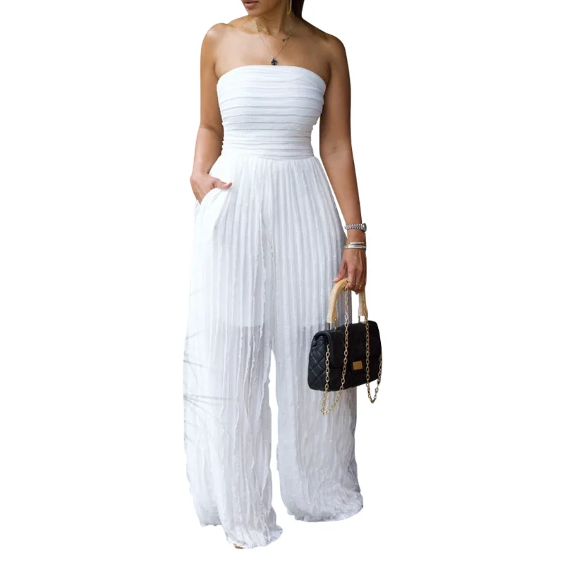 Women's Jumpsuit High Waist Sexy Tube Top Sleeveless Wide Leg Casual Holiday Party Summer Jump Suits for Women Jumpsuits