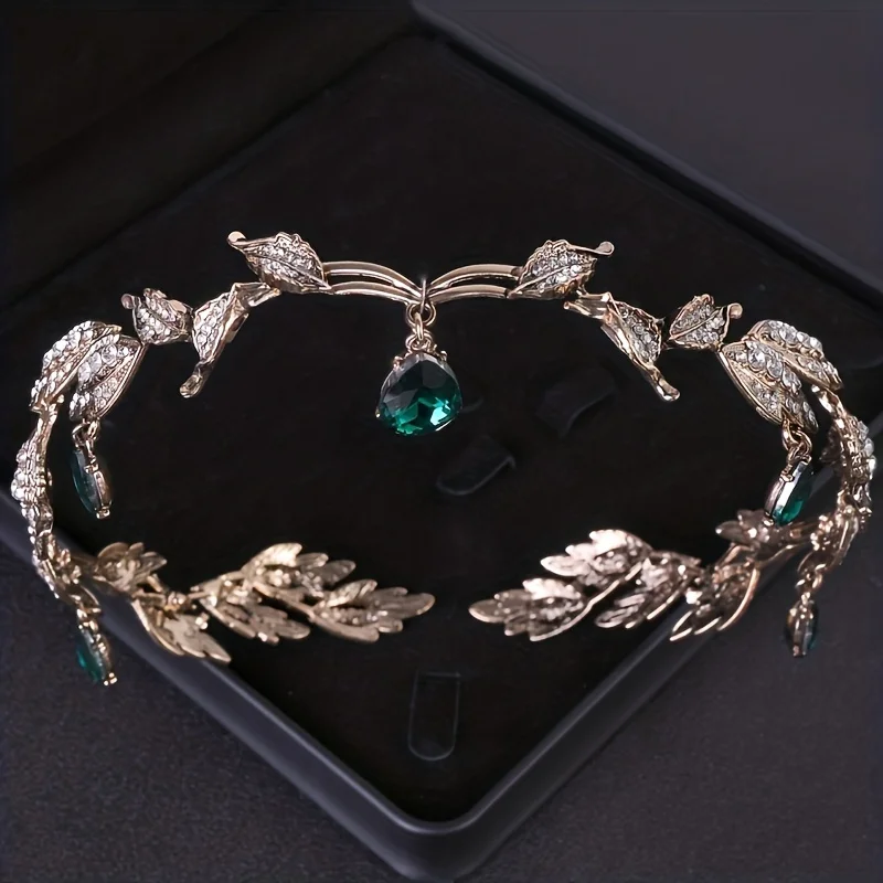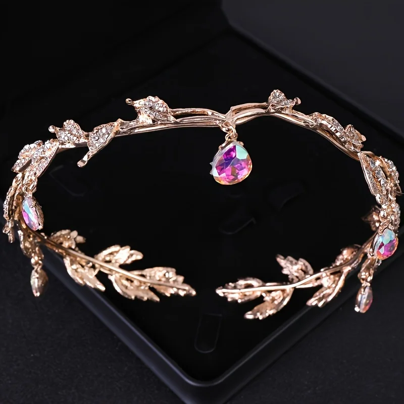 Women's vintage tiara Elegant waterdrop leaf tiara crown crystal gold silver rhinestone wedding hair accessories bridal tiara