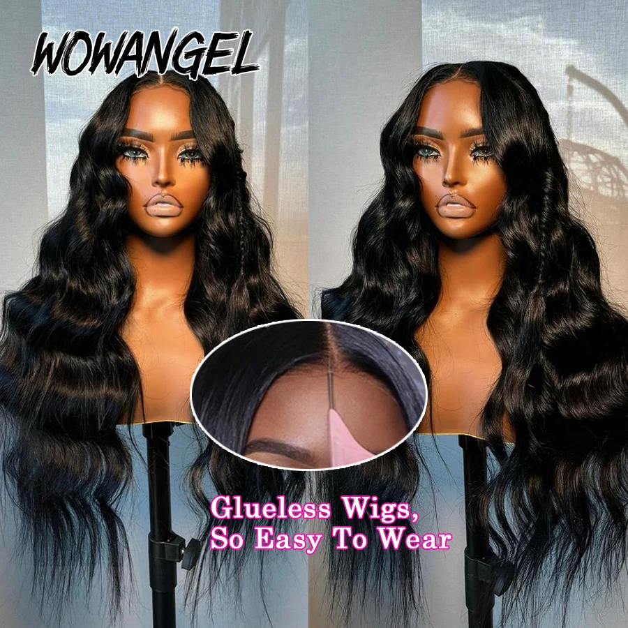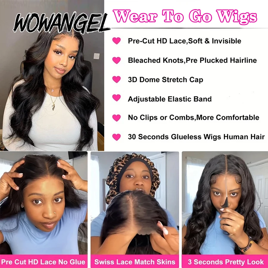 WowAngel 34inches Pre Cut 9x6 HD Lace Closure Wigs Wear To Go Glueless 250% Body Wave Human Hair Wigs Pre Plucked Brazilian Hair