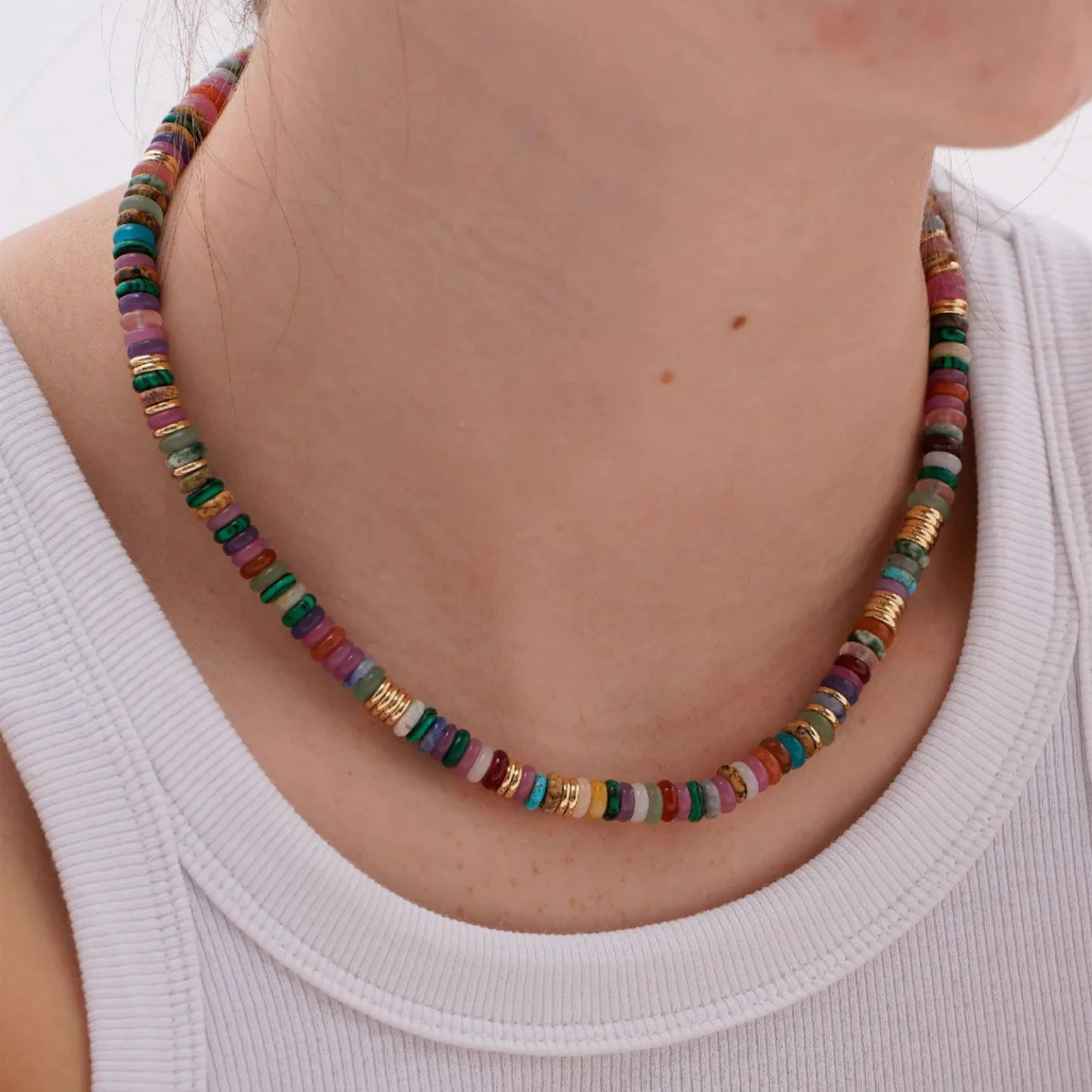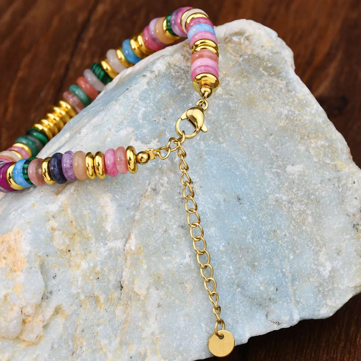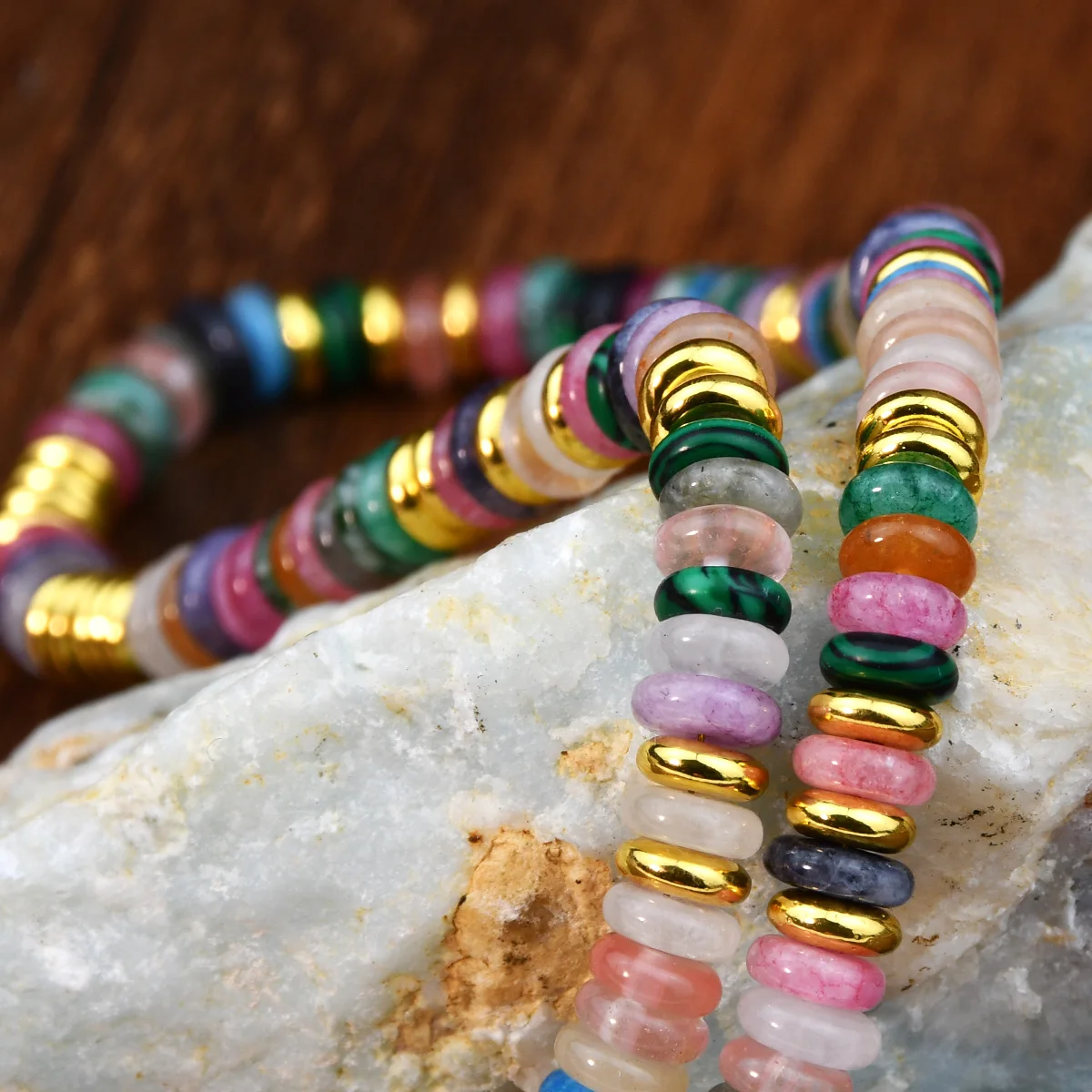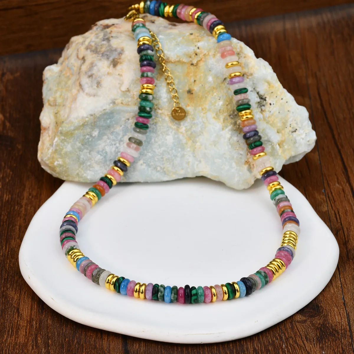 Bohemian Colorful Gemstones with Fashion Golden Spacer Beads Women Necklace Bracelet Set